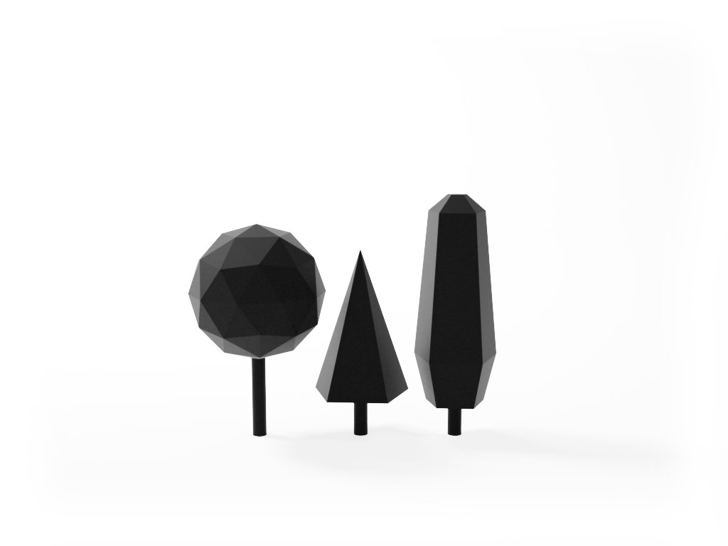 Navrhnuté ako abstraktné prvky namiesto doslovnej vegetácie. Tieto stromy dopĺňajú architektonické modely tým, že podporujú čitateľnosť mierky a priestorovej hierarchie bez toho, aby na seba strhávali pozornosť.